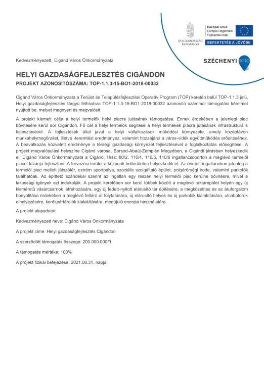 3973 Cigánd, Fő u. 80. Tel.: 47/534-400, e-mail: