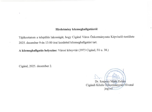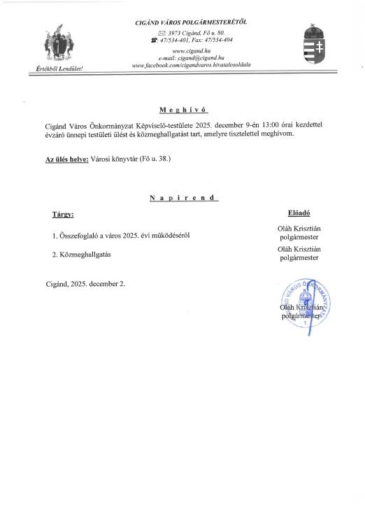 | Meghívó Közmeghallgatásra! | 2025. december 09. |