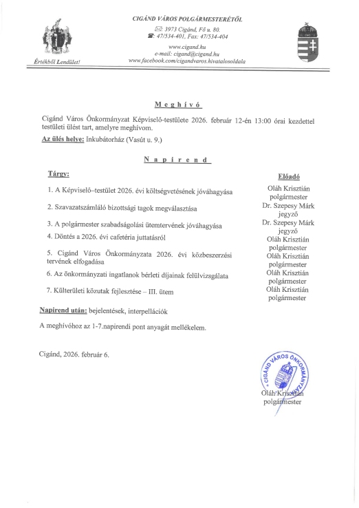 3973 Cigánd, Fő u. 80. Tel.: 47/534-400, e-mail: